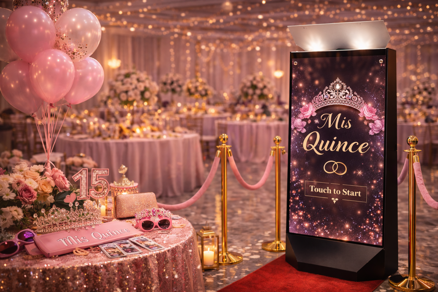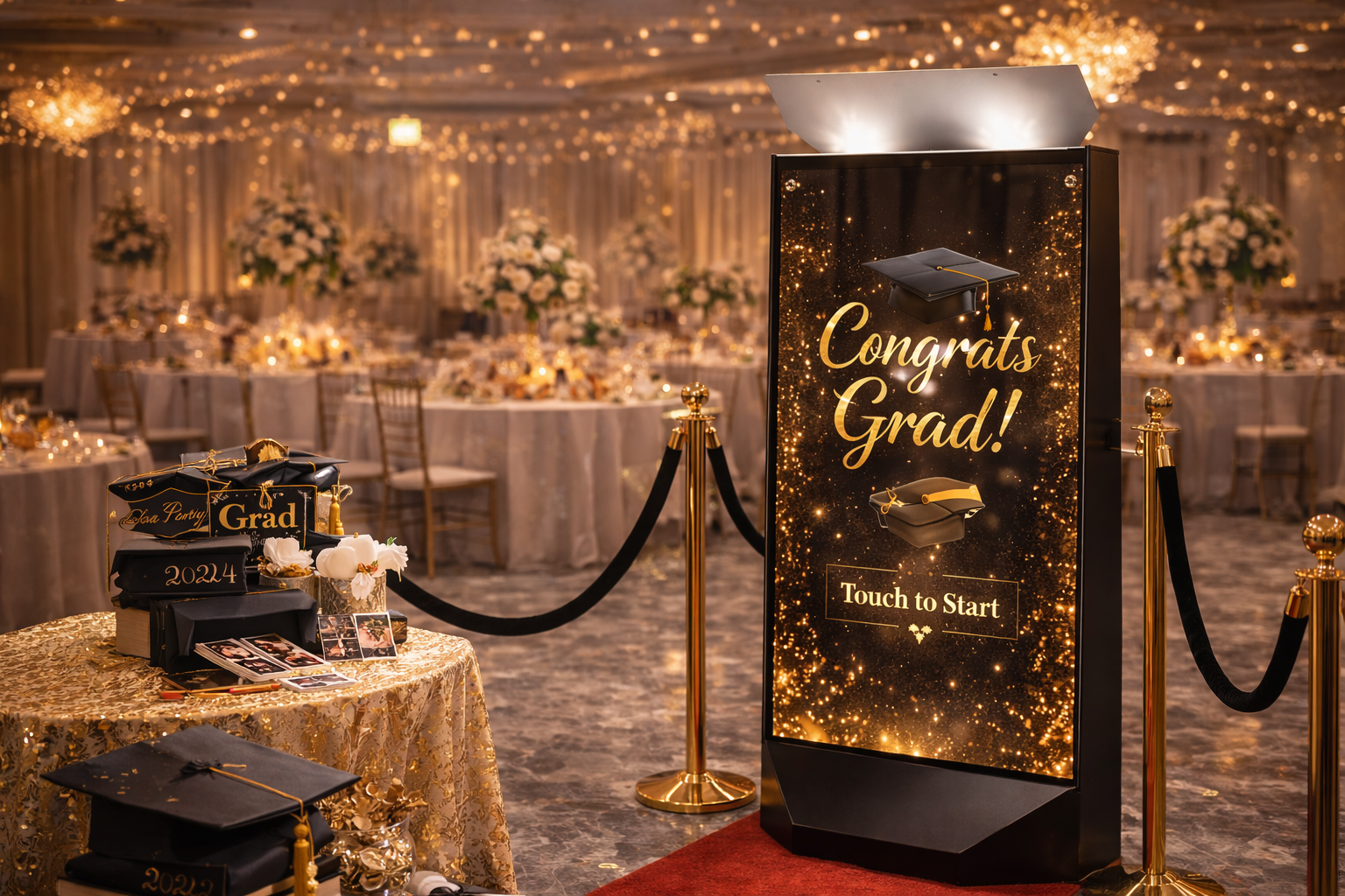 Unlike traditional enclosed booths, our Mirror X Photo Booth becomes a stylish focal point within your reception space. Its elegant presentation blends beautifully into: